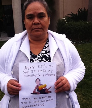Passing through the halls one day in September, Martha Reyes stopped to see why a group of her Hyatt co-workers stood laughing in front of a bulletin board. Looking closer, she saw photos of her head, and those of other housekeeping employees, pasted onto bodies in swimsuits. “I got really angry,” says Reyes, seeing her face on a figure that looked “almost naked, and a very different body that wasn’t mine. I felt very humiliated and embarrassed.” Martha’s sister Lorena was also included in the beach-themed display, which Hyatt management had posted over the weekend as part of Housekeeping Appreciation Week. Martha Reyes took down her picture and her sister’s. A month later, alleging they spent too long on their lunch break, the Hyatt Regency Santa Clara fired both of them.