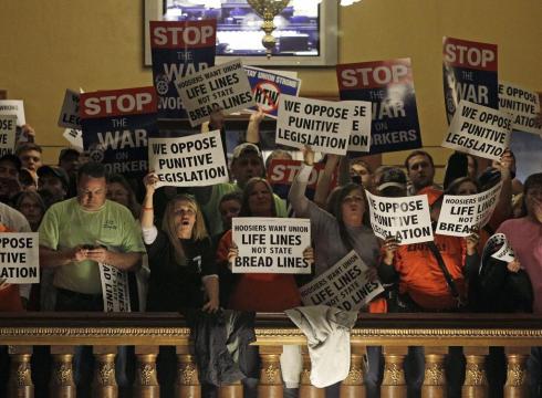 One year ago, a broad coalition of Wisconsinites held a massive three-week occupation of their state capitol opposing Governor Scott Walker’s bid to cripple collective bargaining for public employees. The Wisconsin uprising captured national attention, inspired organizing across the country, and instigated recall campaigns of its most prominent opponents. Now, another Republican legislature is set on breaking labor’s back, and union activists in the Hoosier State are hoping for an uprising of their own against. Governor Mitch Daniels’s efforts to make Indiana the first “right to work” state in the industrial Midwest.