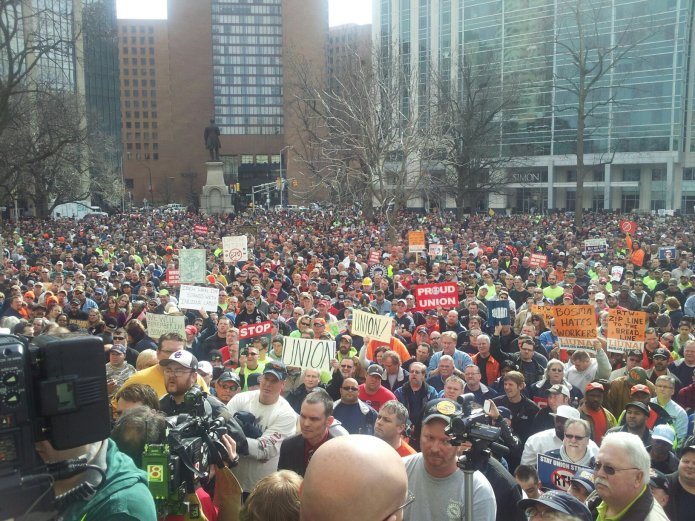 One year ago, a broad coalition of Wisconsinites held a massive three-week occupation of their state capitol opposing Governor Scott Walker’s bid to cripple collective bargaining for public employees. The Wisconsin uprising captured national attention, inspired organizing across the country, and instigated recall campaigns of its most prominent opponents. Now, another Republican legislature is set on breaking labor’s back, and union activists in the Hoosier State are hoping for an uprising of their own against. Governor Mitch Daniels’s efforts to make Indiana the first “right to work” state in the industrial Midwest.